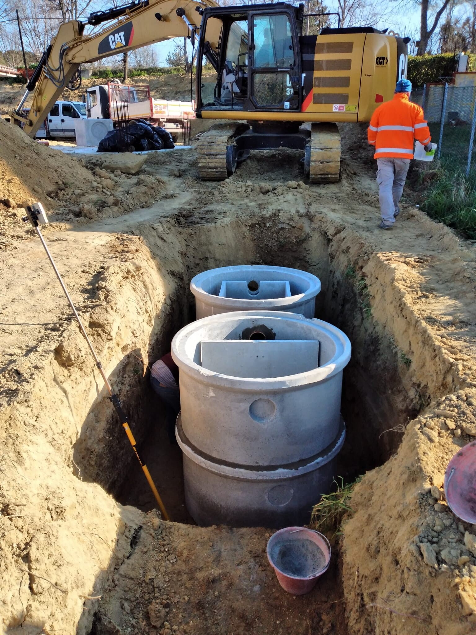 Costruzione di fognature con percentuali di pendenza ottimizziate da strumenti laser